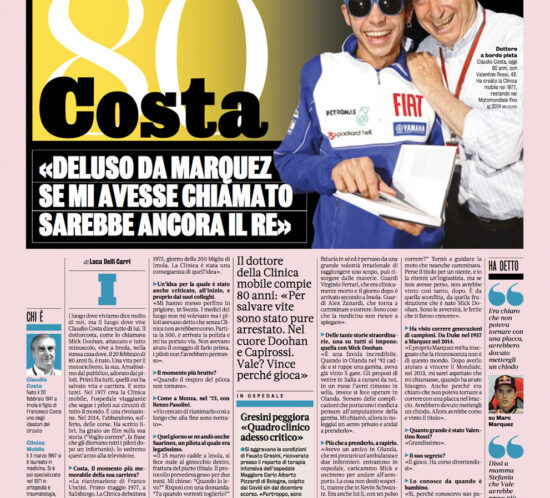 Intervista al dottorcosta, Claudio Marcello Costa, a tutto tondo su Valentino Rossi, Marc Marquez, la Clinica Mobile, il motociclismo di ieri e di oggi
